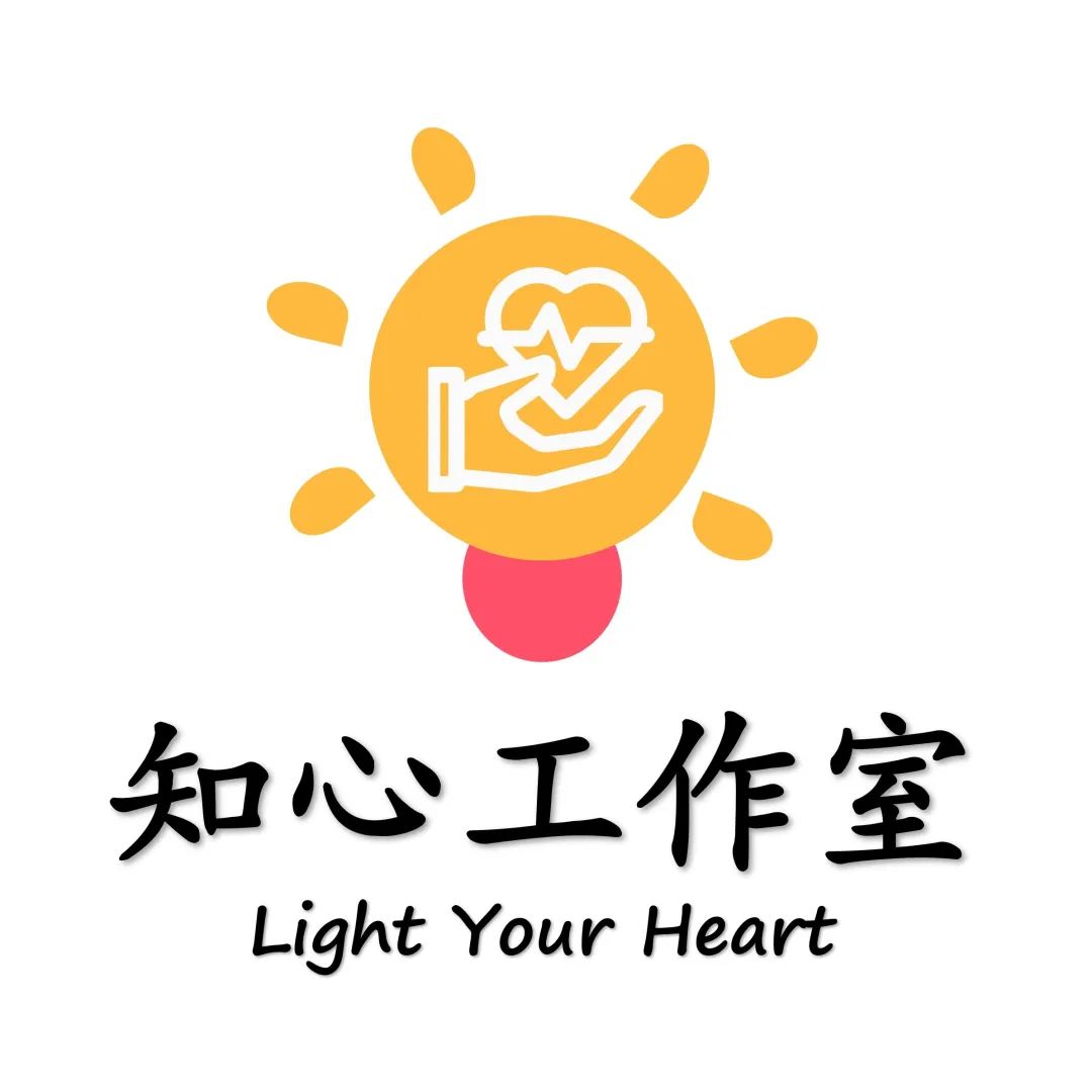本设计文字部分包含“知心工作室”和英文标语,“Light Your Heart”译为“点亮心灵”,谐音“电亮心灵”,体现知心工作室助力学生认识、接纳、进而欣赏自己,提高心理素质,促进全面发展。