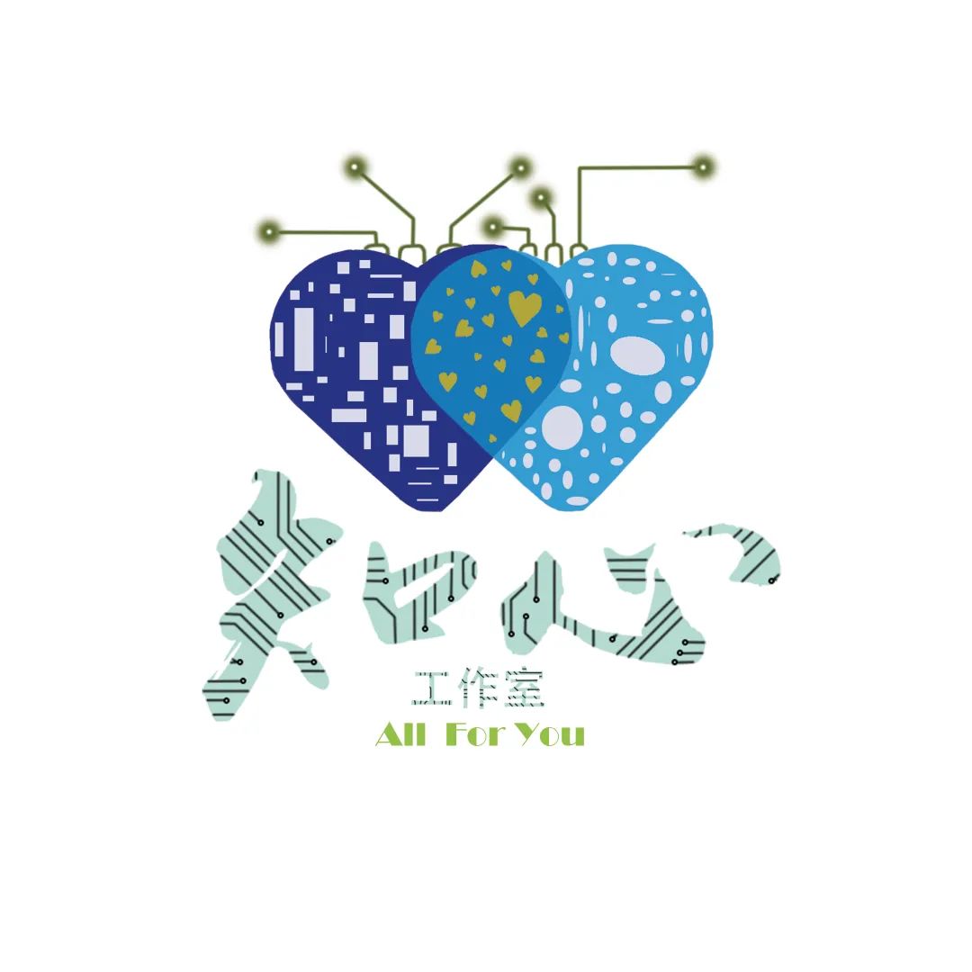 两个紧靠着的爱心相互交融,寓意着心理师与需要帮助的来者彼此契合。其中一个爱心里是形状不一,具有棱角的矩形,代表着受不同烦恼困扰的你我;另一个则是形状不一,圆润的椭圆,代表包容的工作室专业人员,以及困惑得到解决的你我。交互部分的小爱心,意味着每一位来客都能得到熨帖的帮助。大字上的花纹则是电气的标志性元件——电路板,最下边是一句英文“All For You”,含义是“一切为了你”,表达了知心工作室对咨询之人的拳拳之心。