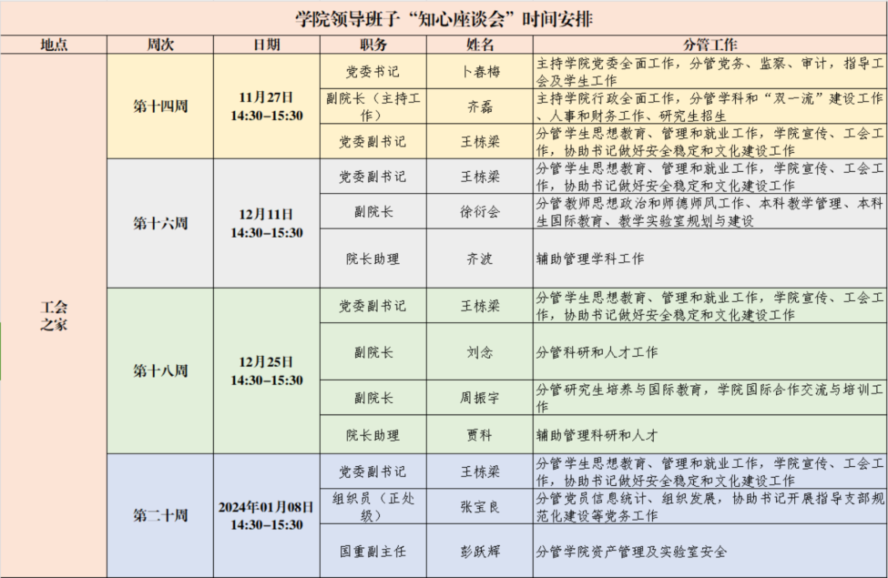亲爱的同学们,你是否在成长规划、学业、就业、心理、政策等方面存在困惑?是否曾希望有一个机会,能和学院领导老师近距离沟通,解答自己的困惑和问题?知心工作室特别推出“知心座谈会”,邀请学院领导班子全体成员作为座谈会嘉宾,与同学们零距离、面对面交流。无论你是在学习、生活、职业规划、学校政策等各方面存在困惑,都可以在这里找到最专业的答案!