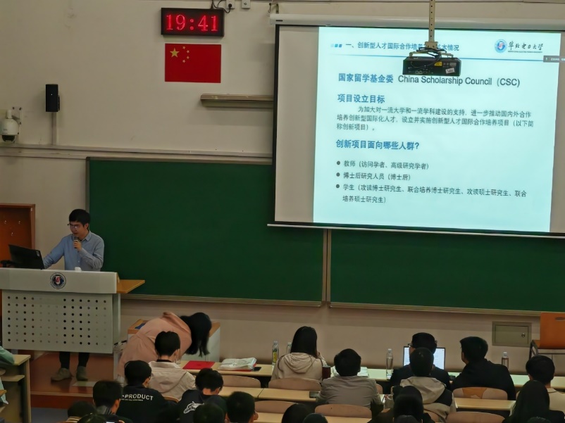 02彭飞老师作为国家留学基金委创新型人才国际合作培养项目的负责人,从设立目标、面向群体等角度为同学们细致生动地介绍了该项目,同学们受益匪浅!