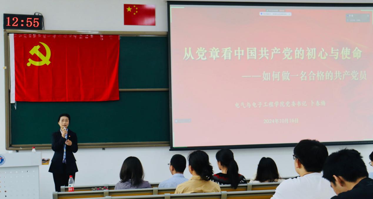 卜春梅以“做一名合格的共产党员”为主题作开班报告。报告中,卜春梅结合党的历史、首部党章与党的二十大党章、电气学院党组织的优良传统,从加强理论学习、筑牢思想根基、做到知行合一、勇于挺膺担当四个方面,生动阐释了对一名合格共产党员的要求。卜春梅希望全体学员能够端正入党动机,坚定理想信念,认真学习党的创新理论,在学习和生活中积极发挥先锋模范作用,自觉将个人价值的实现与国家的发展需求紧密相连,做传承红色基因、践行绿色发展使命的推动者和先行者。