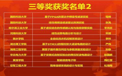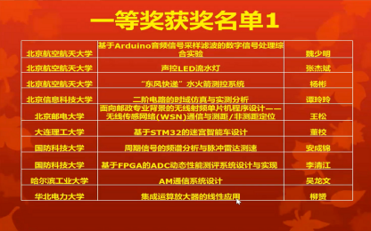 大赛由中国电子学会、国家级实验教学示范中心联席会电子学科组共同主办,北京信息科技大学承办。竞赛采取赛区初赛、全国决赛的方式,全国分为华北、北部、西部、中南、华东 5 个赛区,共收到参赛作品609件,经过赛区竞赛专家组评审,各赛区推荐赛区一等奖参加决赛。华北赛区初赛于5月21日在北京航空航天大学举行,共有96项参赛作品,我校获得一等奖3项,二等奖3项,三等奖2项。经过初赛,来自全国22个省市201所高校的125件优秀作品进入复赛。