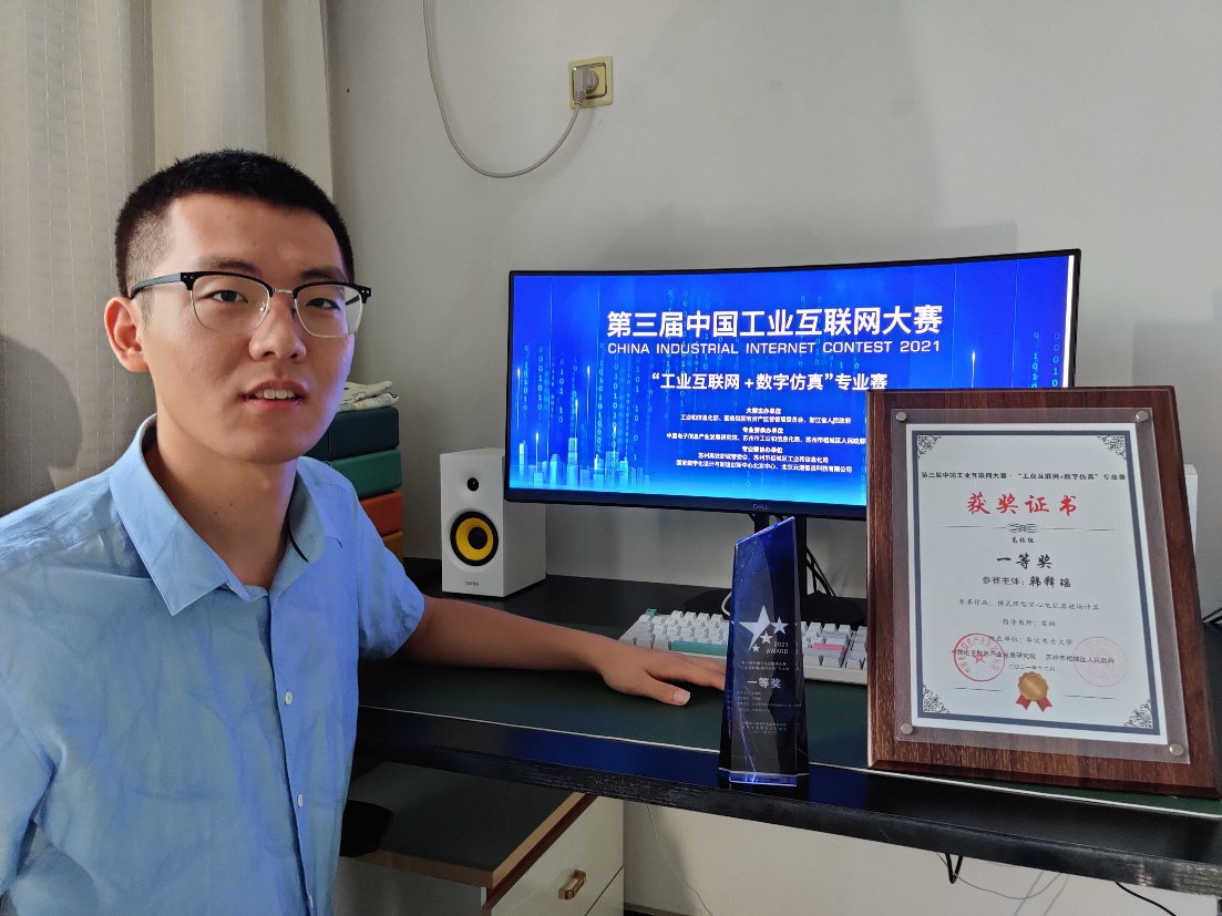 我院硕士研究生韩释瑶同学获第三届中国工业互联网大赛“工业互联网+数字仿真”专业赛一等奖