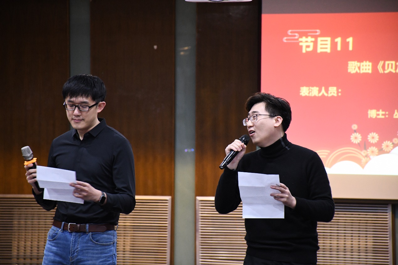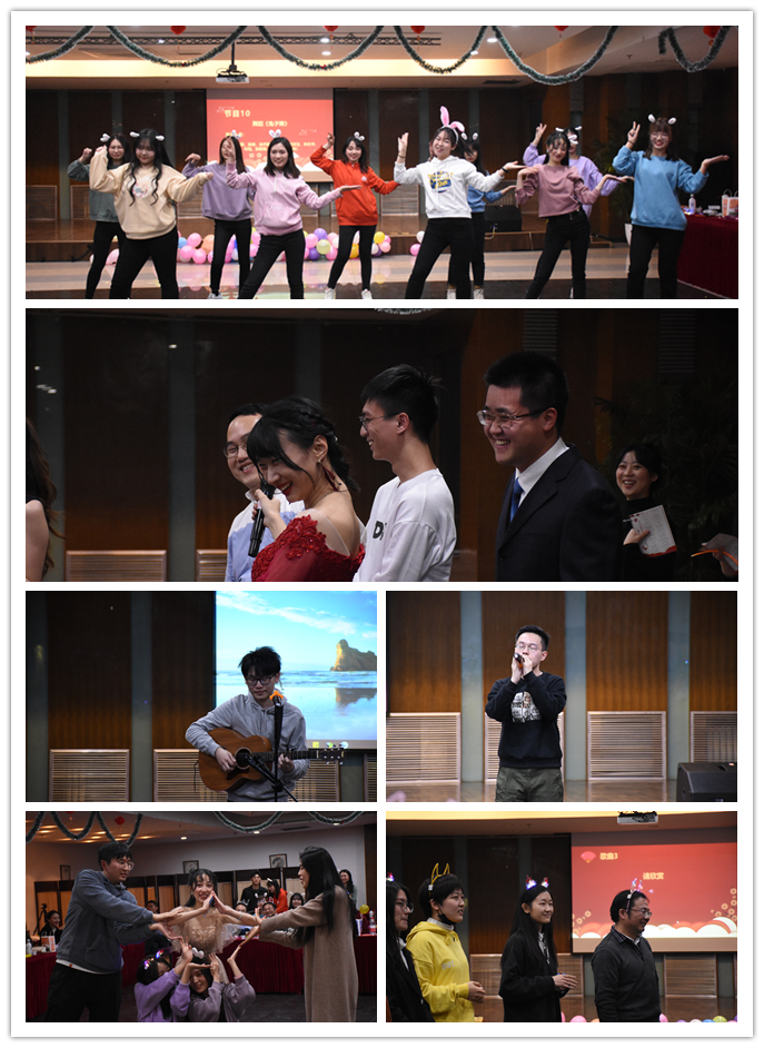 此次联欢活动的节目内容形式多样,研零到研三四个年级同学共展示了7个精心准备的节目,点燃了观众们的热情,掌声和欢呼声此起彼伏。研零同学表演了小品《低价航空》;研一同学分别演唱了歌曲《你曾是少年》以及歌曲《真心英雄》;研二全体女同学带来了舞蹈《兔子舞》,全体男同学则完成了吉他弹唱《成都》;研三同学分别演绎了唱跳《开场舞+歌曲串烧》以及吉他弹唱《后来》。