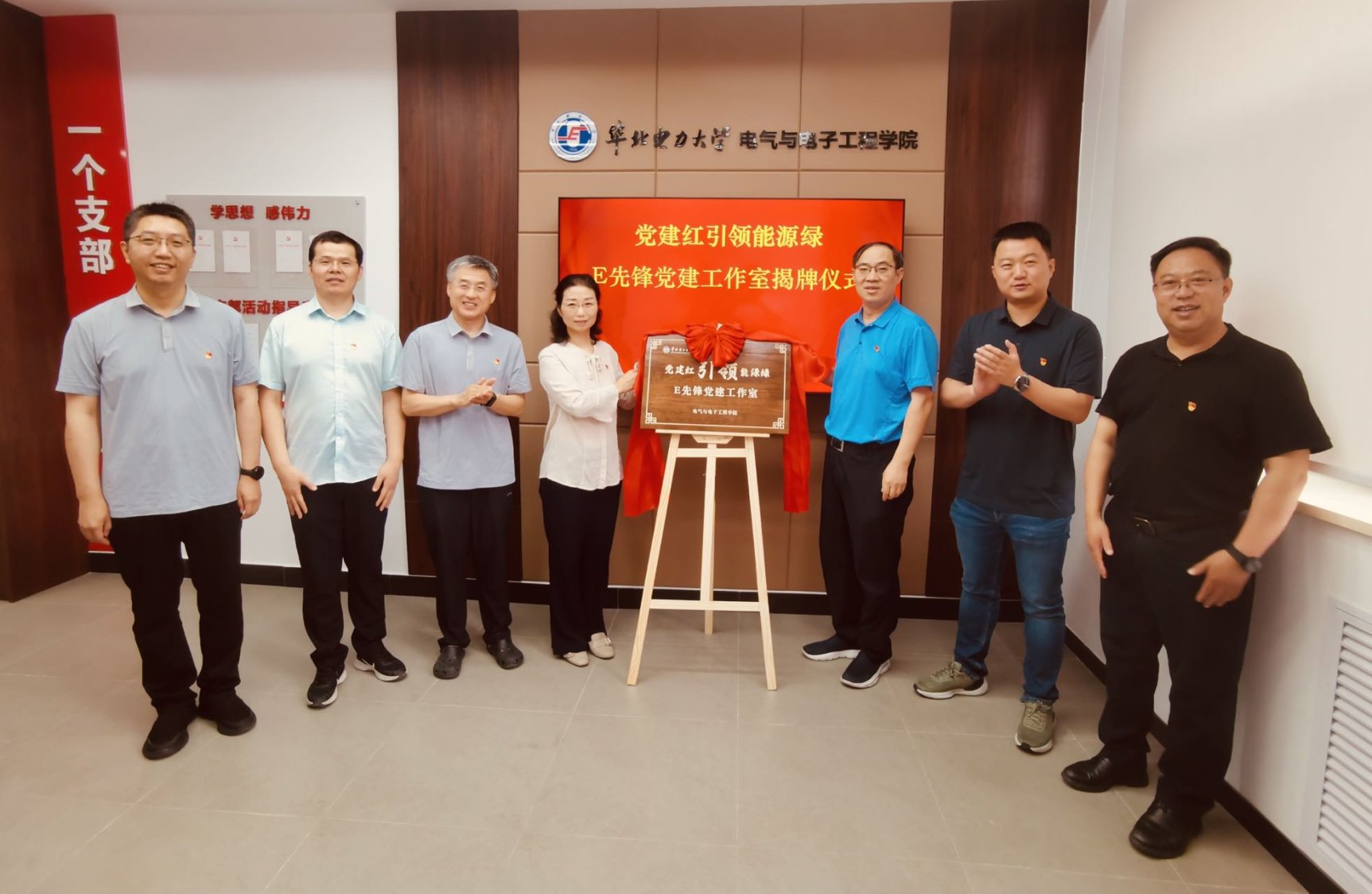 E先锋党建工作室揭牌,激活基层治理新动能。7与1日,E先锋党建工作室揭牌仪式在主楼A座637举办,学院党委委员、正处级组织员参加了仪式。E先锋党建工作室与“支部工作支持服务站”并轨管理,依托图书区、会议区、多媒体区等功能板块,组建学院党建“智囊团”,面向全院师生党支部开展业务指导、活动组织、品牌培育、服务保障、示范引领等服务,打造学院师生党员的“加油站”。