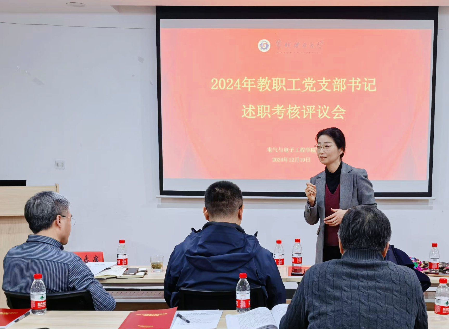 党委于12月19日在主A631党员之家召开了2024年度教职工党支部书记述职评议考核会。学院党委书记卜春梅、领导班子成员、党委委员以及学院团委、分工会、各研究所所长(副所长)、青年教师代表等学院考核小组成员出席会议并担任评委,会议由正处级组织员张宝良主持。