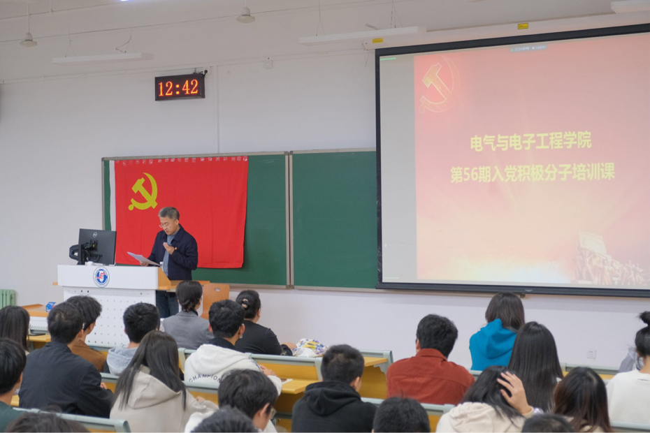 第56期入党积极分子培训班开班典礼在主B101举行。出席开班典礼的有学院党委书记卜春梅,正处级组织员张宝良,辅导员王倩以及231名学员。开班典礼由张宝良主持。
