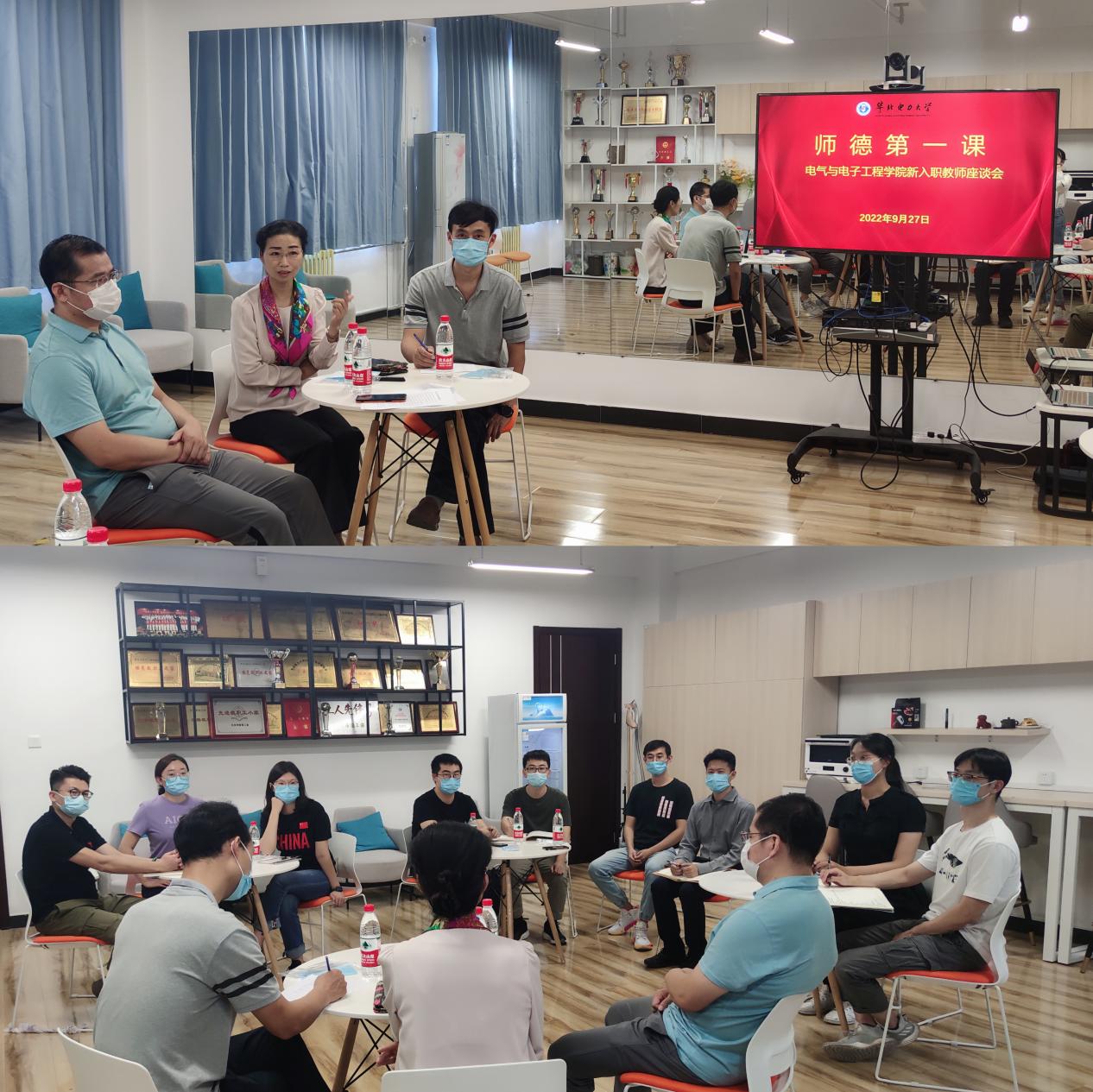 以师德为范,扣好第一粒扣子。9月27日,学院召开了“师德第一课”新入职教工座谈会,学院党委书记卜春梅、副院长徐衍会、学院党政办公室主任刘春磊,以及9位新入职教师参加会议。卜春梅在会上谈到,电气学院有着深厚的历史积淀和文化传承,有着教学相长、良性互动的浓厚氛围,希望各位新入职的教师能够在学院这个大家庭中施展好才华和抱负,按照“四有好老师”“四个引路人”的要求,不忘立德树人初心,不断提高育人的能力和水平。徐衍会领学了《教职工思想政治素质和师德师风考察工作办法》和《裸拍