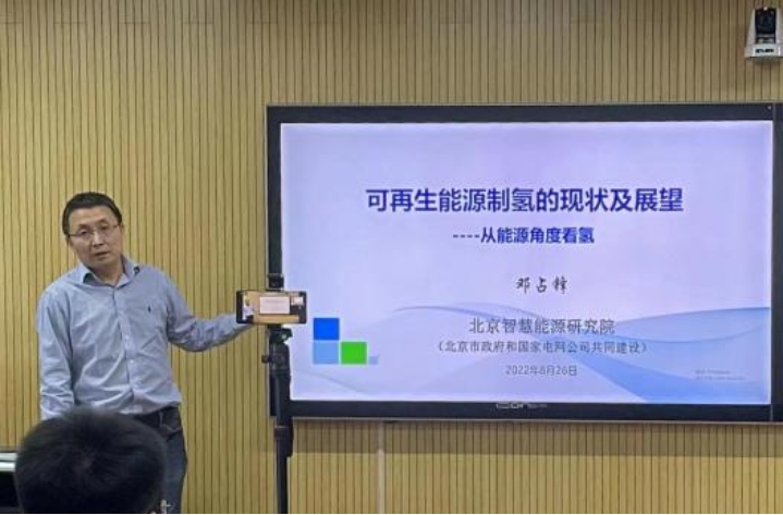 电力企业专家讲堂第九讲成功举办,北京智慧能源研究院氢能技术研究所所长、教授级高工、博导邓占锋受邀为电院学子们带来了题目为可再生能源制氢现状及发展的专题讲座。本次讲座于线上线下同时开展,贯通电2101班全体同学在主B301参会,其他学生通过腾讯会议参加,讲座由裸拍