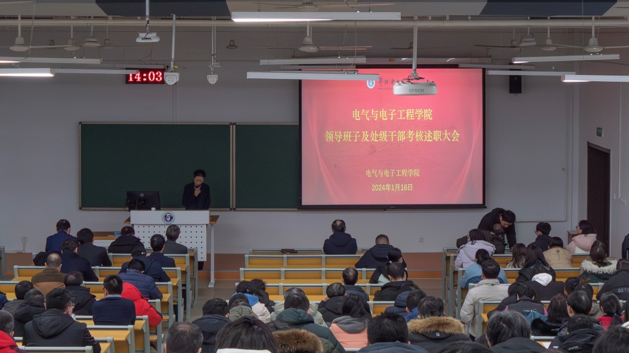 卜春梅代表学院处级领导班子向全体教职工述职,并进行了个人述职。她围绕主题教育、学科建设、人才引育、教学成果、科研成果、国际合作、学生工作等多个方面总结了2023年学院取得的成绩,并把意识形态工作情况作为述职报告的重要内容,自觉接受全体教职员工的监督和评议。她强调,2024年应当持续深化党的二十大精神学习贯彻落实,在加快建设教育强国、学校奋力推进“双一流”建设背景下,全面贯彻落实学校党委和行政的各项决策部署,确保学院“一融双高”建设取得更大实效。